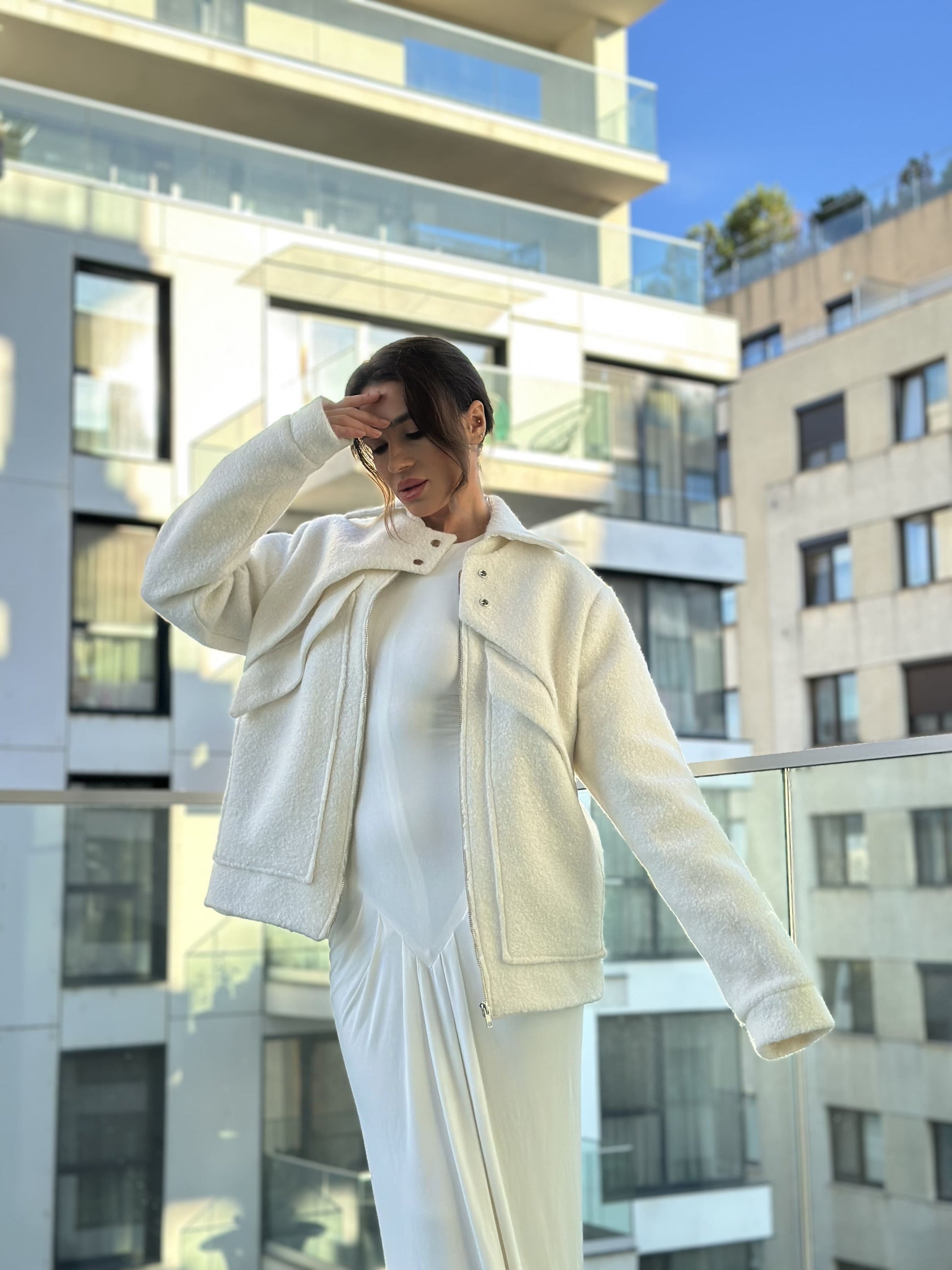 The Cindy Jacket combines contemporary design with practical functionality. Crafted from textured boucle textile, this oversized silhouette offers effortless sophistication and comfortable layering. Generously proportioned large pockets provide convenient storage without compromising the jacket's refined aesthetic. Perfect for transitional seasons, this piece transitions seamlessly from casual to polished occasions.